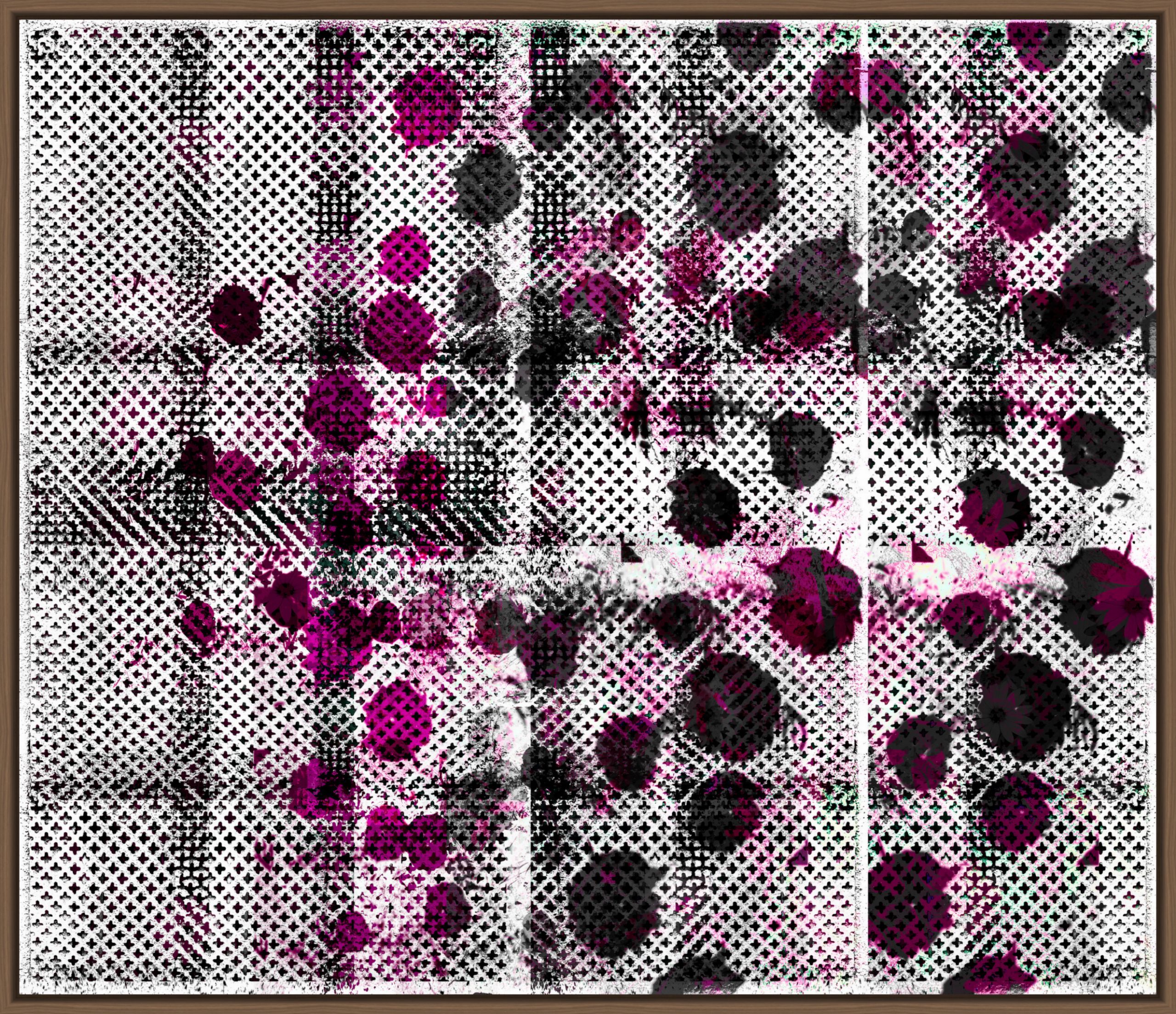 In this cycle, FX Combes conjures up a garden that is not one of innocence or controlled order, but a parallel space, traversed by contradictory forces. This garden is made up of wasteland, traces, networks of shadows and light. It contains less orderly forms than sudden eruptions and unexpected proliferations. Technology and screen printing participate as instruments of germination: pixels that scatter like seeds, inks that spread like roots, shifts that recall the unpredictable movements of nature. This “other garden” is not a place of rest, but a territory of passages, of in-between spaces, where images grow in their own way, often contrary to expectations. It is a garden that is not to be contemplated, but to be traversed—a landscape where accidents become blossoms.
