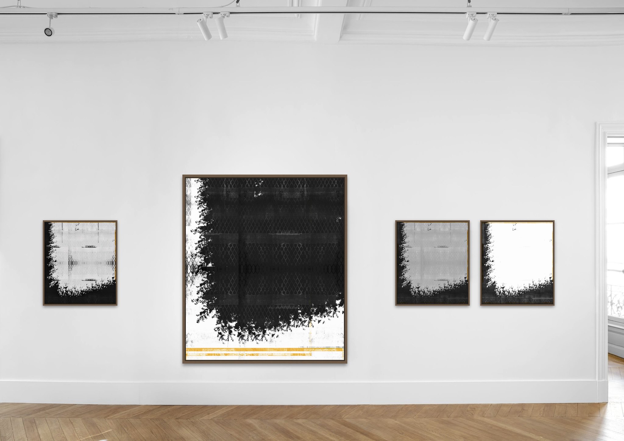 FX Combes explores the margins of the image, those areas where form is exhausted and control vanishes. Digital accidents, irregularities in screen printing, and unintentional traces of ink are not flaws: they reveal limits, flashes where creation breaks free from intention. Each work becomes a border territory, a space suspended between control and overflow, familiar and foreign. The mediums respond to each other, overlap, interrupt and pursue each other in a fragile but intense dialogue. Ibi Deficit Orbis: where the world is absent, where order fades away, an uncertain presence emerges, a ghost of matter and gesture. It is in these interstices, in these fringes where everything could tip over, that FX Combes’ work finds its strength: a cartography of the unpredictable, where each image bears witness to the fragile balance between intention and accident.